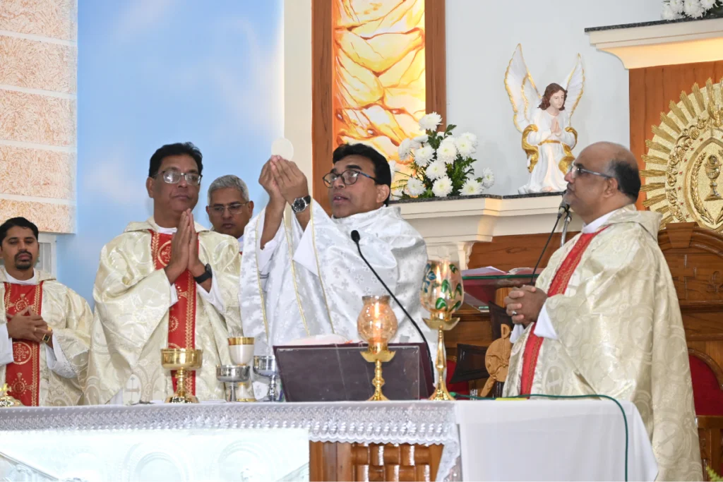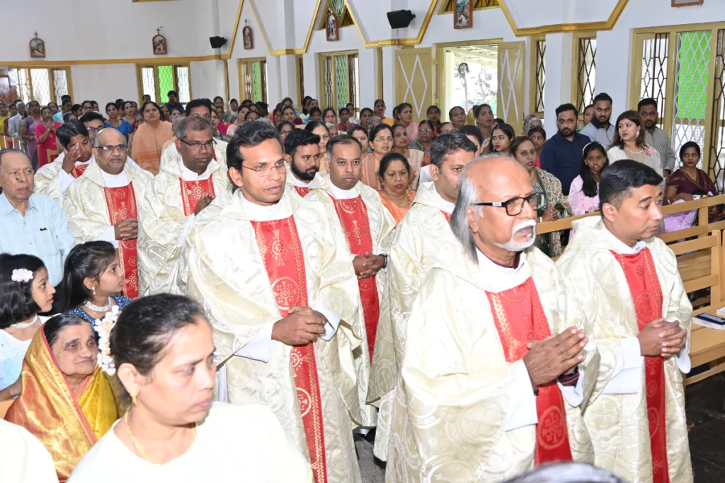 On January 7, 2025, we joyfully celebrated the 25th Ordination Anniversary of Fr. Aloysius S. Gonsalves, C.S.C. The day was marked by a deeply spiritual Eucharistic celebration, during which Fr. Aloysius, surrounded by many religious priests and sisters, offered the Holy Sacrifice of the Mass in thanksgiving for his vocation and the grace of 25 years of faithful service to the Lord and His Church. The Church was filled with the faithful, united in prayer, as they joined together to honor Fr. Aloysius’ dedication to the priesthood. His ministry has touched many lives, and this anniversary was a time for the entire community to give thanks for his unwavering commitment to God’s work. Following the Mass, the celebration continued on the church grounds, where all gathered in joyful fellowship, sharing stories and offering prayers in gratitude for Fr. Aloysius’ service. This event was not only a personal milestone for Fr. Aloysius but also a powerful reminder of the gift of priesthood and the calling to serve Christ and His people. It was a day of reflection, unity, and celebration, marked by the grace of God that has sustained Fr. Aloysius in his journey of faith.